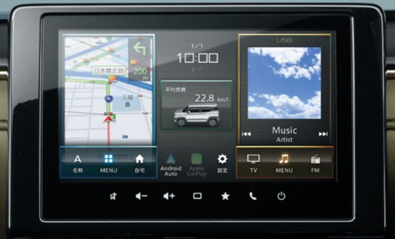 The all-new XBEE boasts a charming exterior design and a roomy interior, both of which were inherited from its processor. It also incorporates upgraded safety and comfort features, along with significantly improved road performance and fuel efficiency. The Pioneer car navigation system for the new XBEE is equipped with a sharp and clear nine-inch high-definition (HD) display, framed to seamlessly follow the contours of the vehicle’s dashboard. This system navigates the driver through an optimal route to the destination, using an intuitive map and guide. The HDMI input and the support for Apple CarPlay and Android AutoTM for smartphones enable the playback of a diverse range of infotainment content on the road. The customizable home screen is divided into navigation, vehicle information, and audio sections, simplifying the selection and operation of various features. As an additional benefit, subscribers of the Suzuki Connect Service can receive notifications on the unit’s screen and initiate calls to Suzuki Customer Support for assistance directly from the screen.