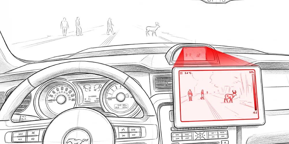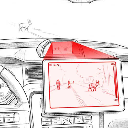 Designed to enhance driver awareness and safety in low-visibility conditions. Detects pedestrians, vehicles, and obstacles beyond the range of headlights, offering clear vision during nighttime, glare, fog, or rain for improved driving confidence and reaction time.