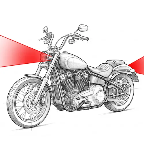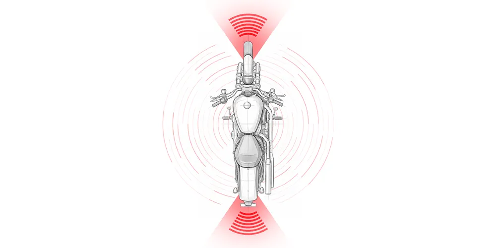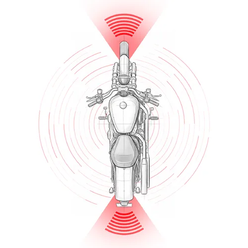 A dual-zone FMCW radar system designed specifically for motorcycles, providing real-time detection of vehicles, bikes, and pedestrians in front, rear, and side hazard zones. Using 77–79 GHz radar with wide-angle coverage, the system offers early warnings for blind-spot risks, lane-change hazards, and front-collision threats to enhance rider safety.